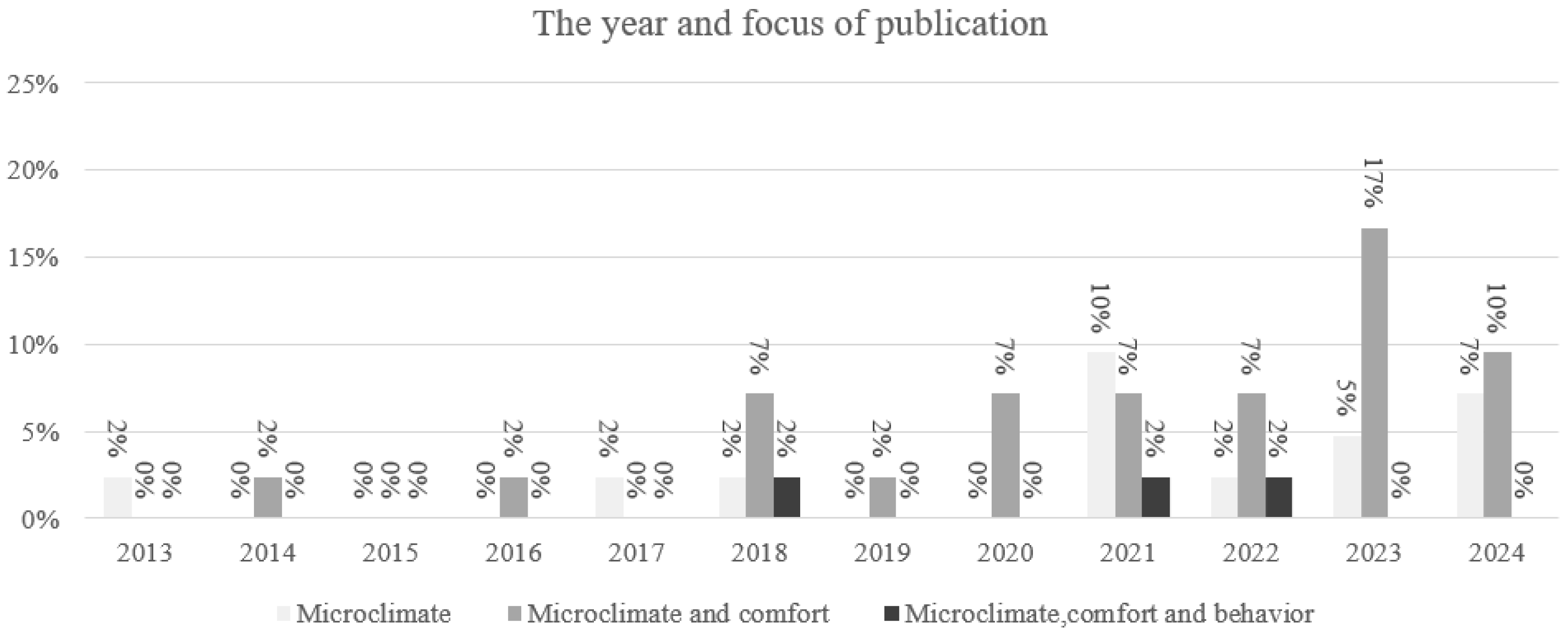 - What are the current research trends and distributions concerning the microclimate spatial mechanisms?