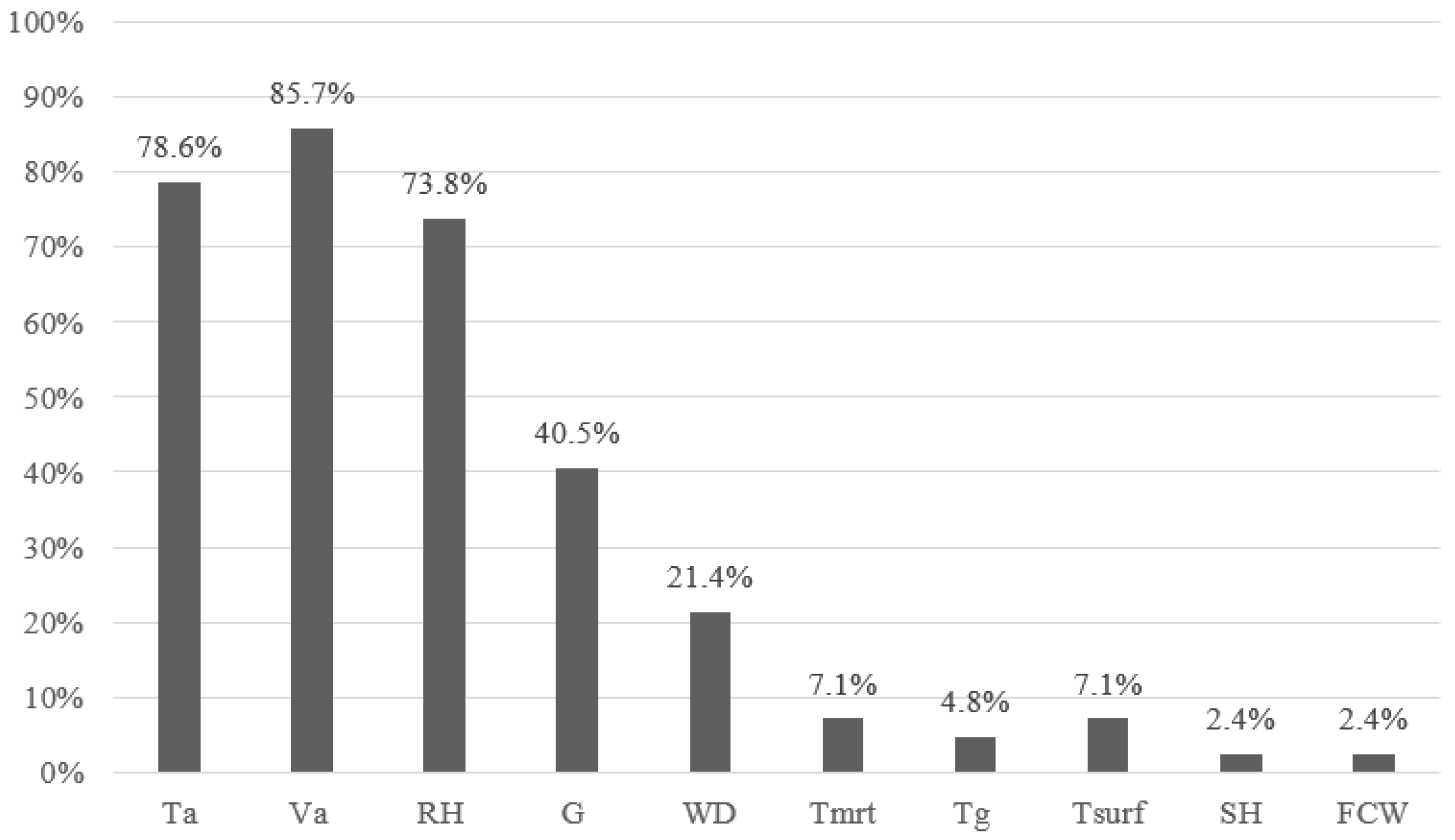 | Tmrt | Mean radiant temperature | TSV | Thermal sensation vote |