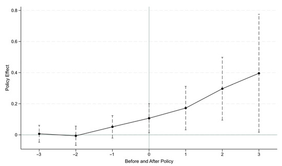 55] strategy in selecting the base period, choosing the initial period of the research sample as the base period for the dynamic effect trend test. According to the results of the parallel trend test shown in