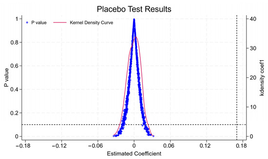 69]. This approach treats each non-pilot city in the sample as a “pseudo-treated unit,” in turn, assuming it received the policy intervention in the same year, and estimates the difference between the actual and synthetic paths before and after the policy.