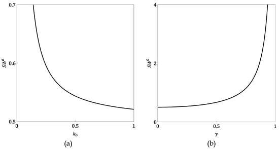 - A higher government’s service level cost coefficient () leads to a lower optimal service level () and reduced market demand (), consequently resulting in a decrease in social welfare;