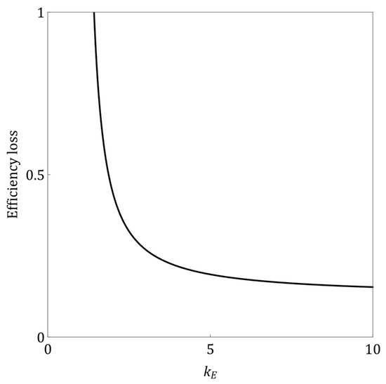 Since and , then . This implies that as decreases (with held constant, thus increasing ), the total efficiency loss () increases. □