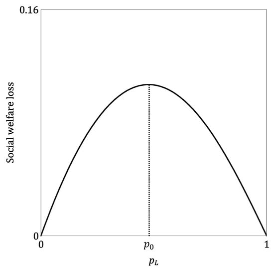 where represents the service level cost coefficient when the government self-operates the project. Consequently, social welfare, defined as the sum of government profit and consumer surplus, can be expressed as