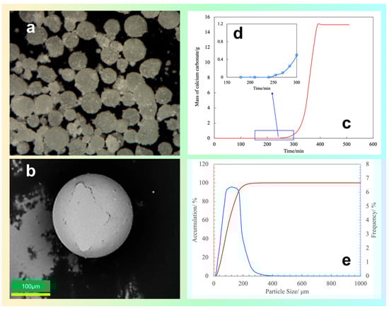 Initially, the microcapsules were dispersed in an appropriate amount of deionized water to form a suspension. Following ultrasonic treatment for 30 s, the particle size of the microcapsules was measured using a Malvern Mastersizer 2000 laser particle size analyzer (manufactured by Malvern Panalytical, Malvern, UK). The surface morphology of both the carriers and the sustained-release microcapsules was observed with a Zeiss Stemi508 stereomicroscope (manufactured by Carl Zeiss AG, Oberkochen, Germany) and a FEI-HPLIPS3D scanning electron microscope (manufactured by FEI Company, Hillsboro, OR, USA). Additionally, the Nano-3000 X-ray CT produced by Tianjin Sanying Precision Instruments Co., Ltd. (Tianjin, China) was used to test the mineralization characteristics of products within the pores.