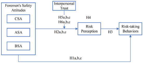 In summary, foremen’s SAs encompass their cognitive understanding and evaluative judgment of safety protocols and play a pivotal role in shaping workers’ RTBs. This influence operates through multiple pathways, including professional guidance, behavioral modeling, and the transmission of safety values. As such, foremen’s attitudes provide a crucial perspective for understanding how frontline RTBs develop. Based on this analysis, the study proposes the following hypotheses: