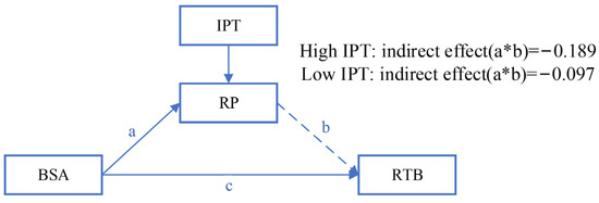 The indirect effect of BSA on RTBs through RP is strengthened by higher levels of IPT.