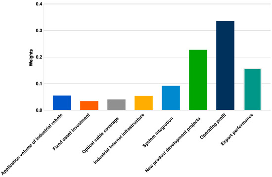Proportional weights of indicators in the intelligent manufacturing transformation evaluation system.