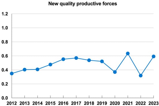 In practical terms, NQPFs embody the concrete application of China’s productivity theory and serve as a crucial pillar for navigating complex global challenges while advancing domestic modernization [4,5,6]. With innovation at its core, NQPFs drive technological breakthroughs and facilitate profound industrial upgrading [7,8]. By integrating cutting-edge technologies, it overcomes the limitations of traditional growth models, achieving both operational efficiency and qualitative improvements in economic development [9,10].