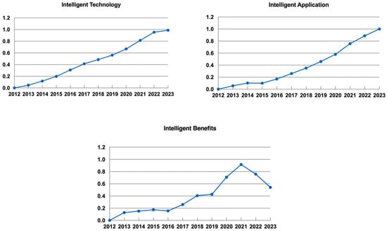 Chinese scholars began researching intelligent manufacturing in the 1990s. Cheng pointed out that due to the weak foundation of China’s manufacturing industry, the initial stage of intelligent manufacturing in China spanned a relatively long period of time. However, through scale expansion, technology introduction, and imitative learning, technological innovation can be achieved, leading to the development of preliminary intelligent manufacturing [31]. Wang and Tao argue that the essence of manufacturing intelligence is not limited to equipment investment and technological application but should also emphasize the economic and social benefits it brings. High-quality development of manufacturing has become a key factor driving the comprehensive progress of the national economy and society [32]. Sun et al. (2024) [33] pointed out that high-quality development has far-reaching significance for the comprehensive progress of the national economy and society. Yu (2020) [34] emphasized that manufacturing is the foundational industrial support and important guarantee for building a socialist modernized powerhouse. It is not only a core component of China’s high-quality economic development but also marks a new stage in China’s industrial development. Jia (2016) [35] proposed that industrial intelligence centered on smart manufacturing represents a new type and advanced stage of industrialization.