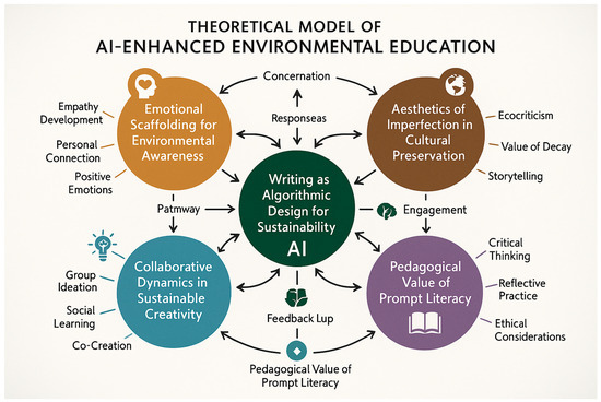 The theoretical framework consists of five interconnected components: (1) Prompt Literacy as the foundational competency enabling human–AI dialogue, (2) Algorithmic Thinking as the cognitive process bridging creative expression and computational execution, (3) Environmental Consciousness as the motivational driver for sustainable content creation, (4) Cultural Preservation as the practical application domain, and (5) Multimodal Synthesis as the creative output mechanism.