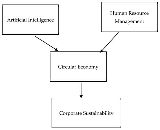 AI enables circular economy practices through data-driven insights, automation, and intelligent decision making, optimizing processes for resource efficiency. HRM ensures the workforce is equipped and aligned with sustainability goals through green HRM, reskilling, and change management. The Circular Economy serves as the operational model, linking enablers (such as AI and HRM) to sustainability by implementing closed-loop systems and regenerative design. Corporate Sustainability is the outcome of effectively integrating AI and HRM via CE pathways, leading to long-term environmental, social, and economic value.