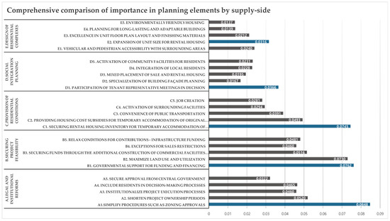 Comprehensive comparison of importance in planning elements by supply side.