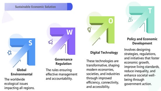 The escalating threats from global environmental changes, such as climate change and pollution, are increasingly jeopardizing long-term economic sustainability. As these issues intensify, they pose significant risks to ecosystems and economies, highlighting the urgent need for innovative solutions [1]. Digital technology can play a pivotal role in addressing these challenges by offering tools for monitoring, data analysis, and enhanced governance. Effective regulatory governance is essential to harnessing these technologies and ensuring they contribute positively to environmental sustainability [2]. This research explores the intersection of digital technology and governance regulation in mitigating the risks posed by global environmental changes, aiming to safeguard economic stability while promoting environmental integrity [3]. International initiatives, such as the United Nations’ Sustainable Development Goals (SDGs), underscore the need for prompt development of new solutions to environmental and social issues. The targets aim to initiate sustainable development among nations, emphasizing partnership and responsibility [4]. However, there must be an effective process of international law capable of responding to evolving global realities. New approaches, such as mainstreaming technology and streamlining cross-border cooperation, need to be implemented to facilitate effective follow-through [5]. By linking national policies to the SDGs, states can enhance their capacity to tackle challenges such as climate change, poverty, and inequality, and build more sustainable and equitable systems in the long run. The 17 Sustainable Development Goals (SDGs) encompass a wide range of global priorities. Of particular interest to us are some of the most specifically applicable SDGs, that is, SDG 3 (Good health and well-being), SDG 5 (Gender equality), SDG 7 (Affordable and Clean Energy), and SDG 8 (Decent work and economic growth), examining their interconnections and effect on sustainable development [6].