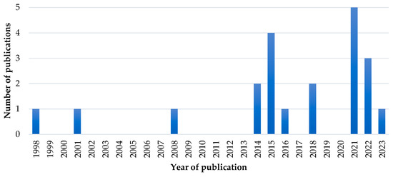 Considering academic rigour, 17 of the 24 academic articles reviewed were published in journals ranked in Q1 for at least one relevant category (Figure 2). Four were published in journals ranked Q2, and two papers were published in Q3 ranked journals. None of the papers were published in journals ranked in the bottom quartile. The year of publication of the selected academic articles ranges from 1998 to 2025, with the majority (17 of the articles) published in the ten-year period to 2025 (Figure 3).