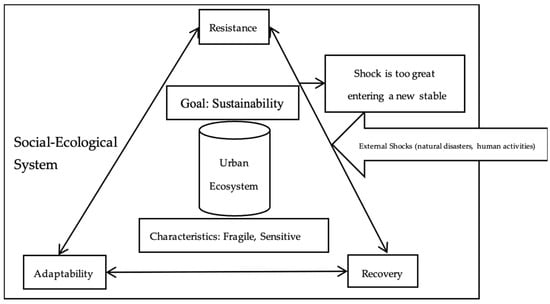 Ecological resilience is defined as the ability of an ecosystem to maintain its structure and functionality in the face of disturbances [10]. Urban ecosystems emerge from the multi-scale dynamic interactions of socio-economic and biophysical factors across time and space [11]. Alberti and Marzluff [2] conceptualized UER as the threshold of perturbation absorption before reorganization of urban patterns, human systems, and ecological functions. The Resilience Alliance [12] further identified core principles in socio-ecological resilience frameworks, including thresholds/tipping points, adaptive cycles, cross-scale interactions, and adaptive governance. To better understand these concepts, Shamsipour et al. [13] systematically analyzed urban ecological components, spanning biodiversity conservation, green infrastructure, habitat restoration, and ecosystem services.
