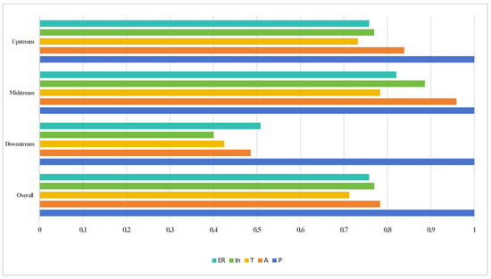 The descriptive statistics of key variables are presented in Table 5. Based on Table 6, population (P) and affluence (A) significantly inhibited ecological resilience in the downstream region, indicating that high population density and intensive economic activities exacerbate ecological carrying pressure. Although no significant impacts were observed in the upstream and midstream region, potential risks still exist. Industrial structure (In) also showed a significant negative effect in the downstream region, revealing that energy-intensive segments in the tertiary industry pose potential threats to UER. Technology (T) played a positive role in both upstream and downstream region, highlighting the restorative effect of scientific and technological innovation on UER. Environmental regulation (ER) demonstrated a double-edged sword effect. The midstream region, as a concentrated area of energy and heavy chemical industry, saw enterprises cutting environmental protection investments to save costs, resulting in significant negative effects of environmental regulations. In contrast, the downstream region’s economic strength mitigated policy shocks, resulting in statistically insignificant effects.