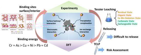 Integrated experimental–computational workflow for elucidating the environmental fate and potential impacts of heavy metals in coal gangue. Figure adapted with permission from Ref. [23] (Copyright 2024 Elsevier B.V.).