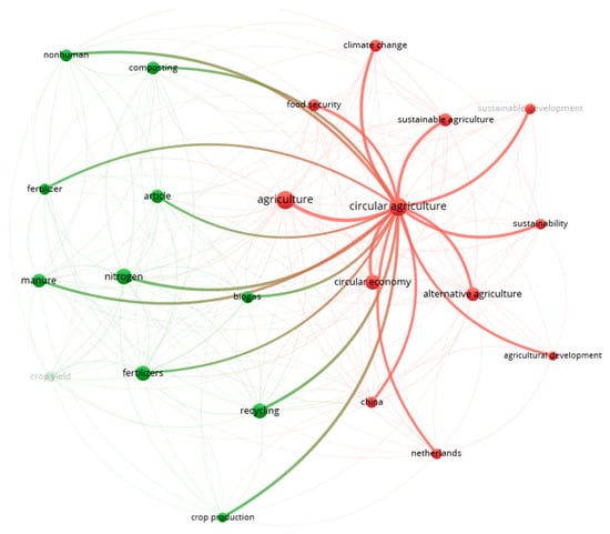 Thematic categories related to circular agriculture according to Scopus-indexed literature. Results based on a bibliometric analysis of keyword co-occurrence performed using VOSviewer 1.6.20.