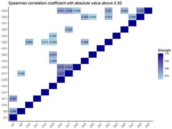 It was important for the survey questionnaire to be internally consistent; thus, the Cronbach’s alpha test was performed. The test involved questionnaire questions (and answers to them) that were picked for the purpose of this article—the scale of answers was unified to meet the test requirements. The alpha value, saying that the consistency is acceptably correct, is frequently set as 0.7 [56].