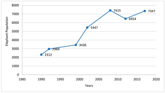 Trends in elephant population in Laikipia, Samburu, and Marsabit ecosystems based on aerial survey [23,25].