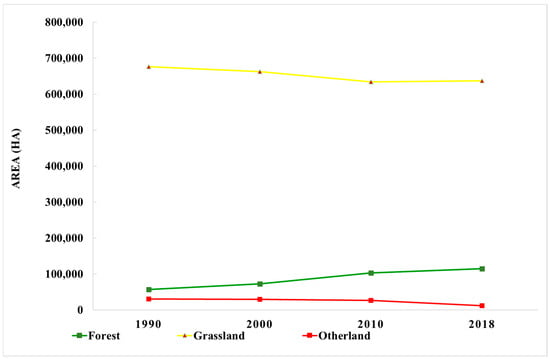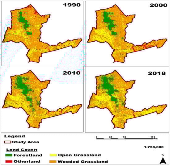 Land cover trends within the Isiolo–Samburu Conservancies between 1990 and 2018.