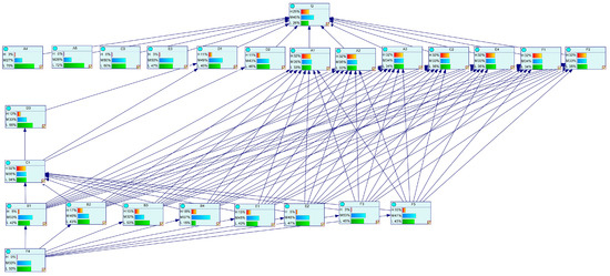 A BN is a probabilistic graphical model that applies statistical methods to address uncertainties within a system. It is based on Bayesian theory [33]. One of the primary advantages of the BN is its ability to simplify joint probability calculations. Given a set of independent discrete random variables, denoted as , the joint probability distribution P can be expressed using the chain rule and conditional independence as