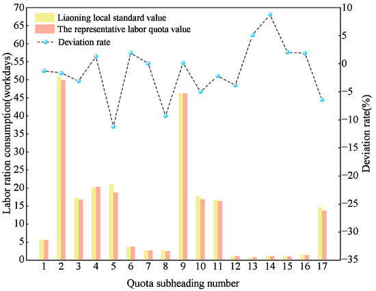 Similarly, we can calculate the fixed productivity level index of high-standard farmland projects represented by 17 “earthworks”, and then finalize the fixed standard of high-standard farmland projects for the “earthworks” by using the local standard High-Standard Farmland Construction Guidelines from Liaoning Province, as can be seen in Table 8.