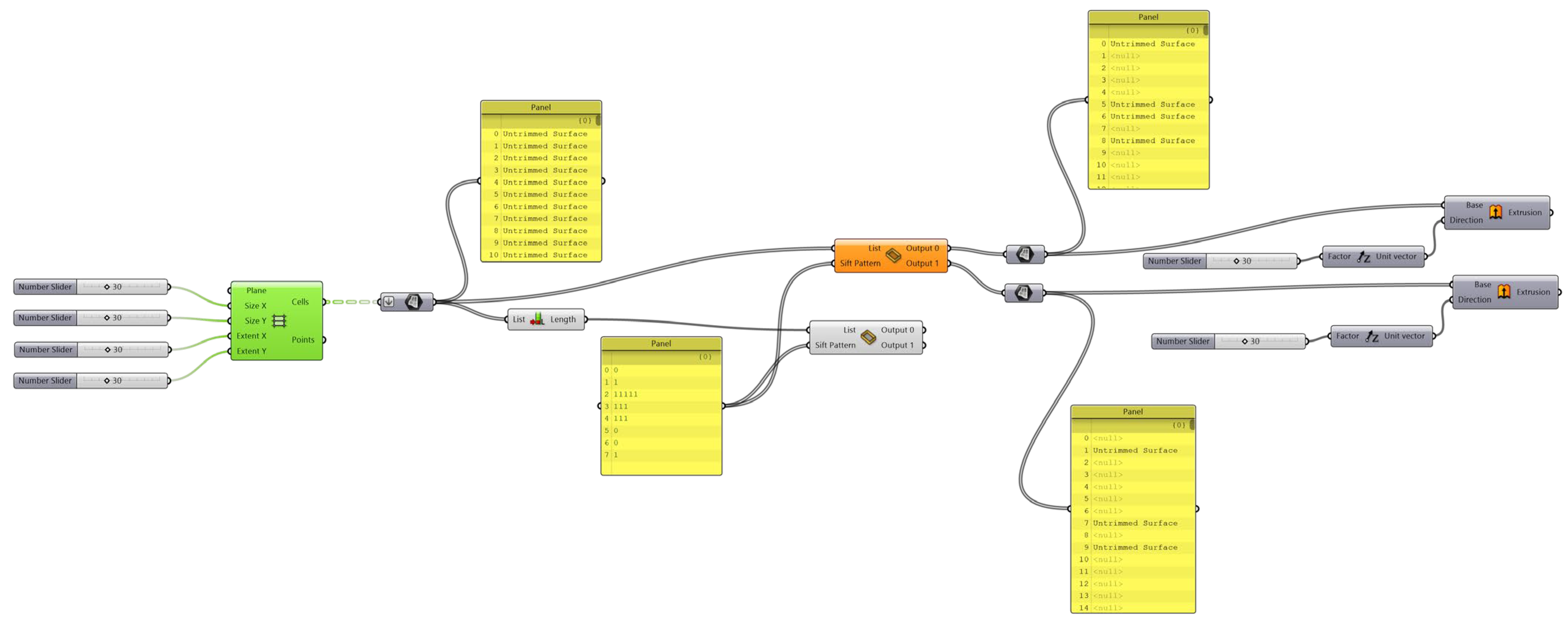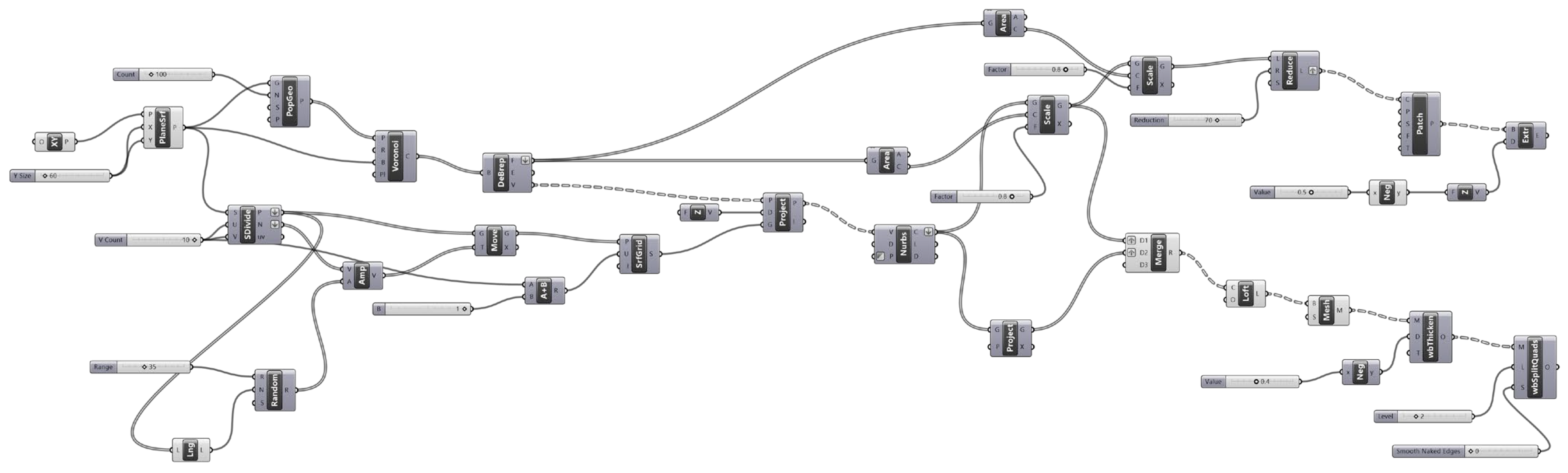 Duplication Components: Components like ‘Array’ or ‘Series’ enable the systematic replication and distribution of geometries, facilitating the creation of varied and complex wall configurations.