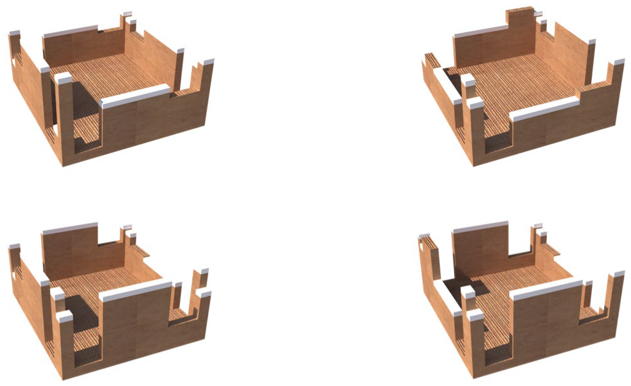 In post-disaster contexts, where speed, resilience, and adaptability are of paramount importance, the square form offers multiple advantages. Its simplicity facilitates rapid on-site production and assembly, while its modular nature allows for flexible expansion, reconfiguration, and spatial organization. Square modules can be arranged adjacently or diagonally with minimal spatial loss, ensuring maximum efficiency in the use of space. Functionally, a single square unit can accommodate a range of programs—such as bedrooms, kitchens, living areas, or bathrooms—depending on evolving user needs. This flexibility supports user-driven spatial restructuring and enhances both functional and spatial performance.