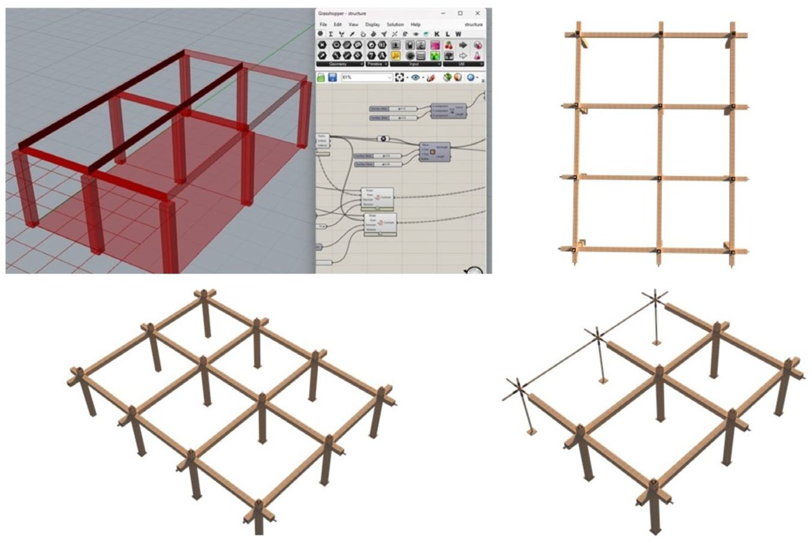 The timber frame system consists of modular building components that can be easily assembled and disassembled. Once the structural design parameters were defined, various scenarios were simulated and optimized using the Grasshopper parametric design software. The proposed algorithm provides flexible solutions to either increase the load-bearing capacity and durability of the structure or reduce costs by precisely adjusting the number of columns and beams according to engineering requirements. By optimizing the number, placement, and dimensions of structural components, the algorithm ensures adaptability to both current needs and future changes. It allows horizontal and vertical elements to be added or removed, enabling a rapid and effective response to user demands. In this way, the functional, esthetic, and ergonomic use of spaces is maximized, leading to increased user satisfaction. The algorithm simulates different connection configurations and evaluates their performance. During the optimization process, the most suitable connection solutions are identified and implemented.