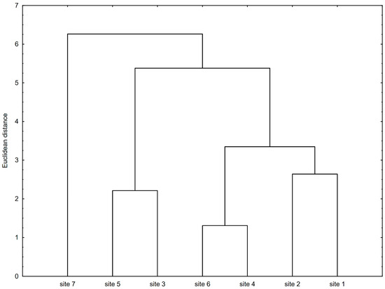 Dendrogram generated using Ward’s clustering method for the seven studied soil sites.