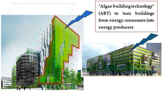 Algae facades represent a novel architectural approach, blending bioenergy and biomimicry to create sustainable buildings. This application is known as “algae-building technology” (ABT). Cutting-edge technologies are being designed to lessen our reliance on fossil fuels, lower the carbon footprint of the building industry, and turn buildings from energy consumers into energy producers. Photobioreactors (PBRs) are a promising use of this technology, as they can produce biomass and heat energy concurrently [65,71,79,80,81].