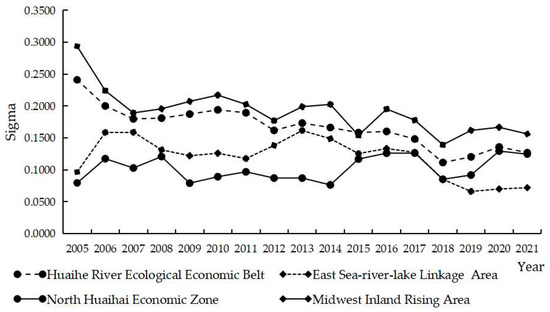 - The spatial convergence of the GLCUECL within the HREEB exhibits significant regional differences. Among the HREEB and its three sub-regions, only the NHEZ does not manifest σ-convergence. Additionally, the HREEB and its three sub-regions exhibit significant absolute β-convergence; the HREEB has the fastest convergence rate. After considering other variables, a significant trend of conditional β-convergence remains observable, and the convergence speed increases by different degrees. The HREEB, NHEZ, and MIRA exhibit different spatial effects, whereas the ESLA manifests no spatial effects. Factors such as rural economic development level, cultivated land resource endowment, agricultural subsidy policies, crop planting structure, and technological investment exert heterogeneous influences on the GLCUECL across different regions. This study provides important insights into the spatial distribution, trends, and drivers of GLCUECL in the HREEB and suggests targeted policies for promoting green and low-carbon land use.