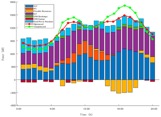 Second, the incorporation of a flexibility supply–demand balancing framework proves to be essential for ensuring the secure and economic operation of the system. The explicit quantification of flexibility and the coordinated scheduling of multiple resources, including energy storage and controllable loads, enable the model to effectively accommodate renewable variability. This reduces dependence on conventional thermal generation for balancing purposes and alleviates operational stress, thereby improving both economic efficiency and system reliability.