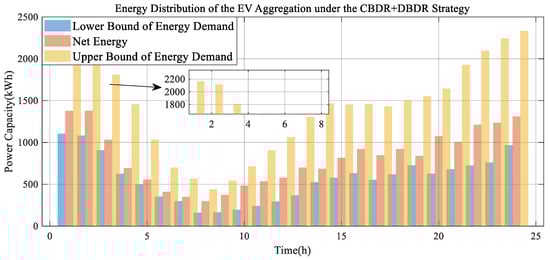 During the EVA’s control process, EV users responding to the CBDR can reduce their charging costs and increase scheduling flexibility through incentive-based price discounts. In contrast, EV users participating in DBDR can autonomously select their charge–discharge behavior based on the real-time subsidized electricity price in order to earn discharging revenue. Therefore, under the premise of ensuring battery safety and meeting travel demands, users are generally more inclined to respond to the DBDR. This is because DBDR not only generates economic returns for EV users but also fully leverages their flexibility for grid regulation.