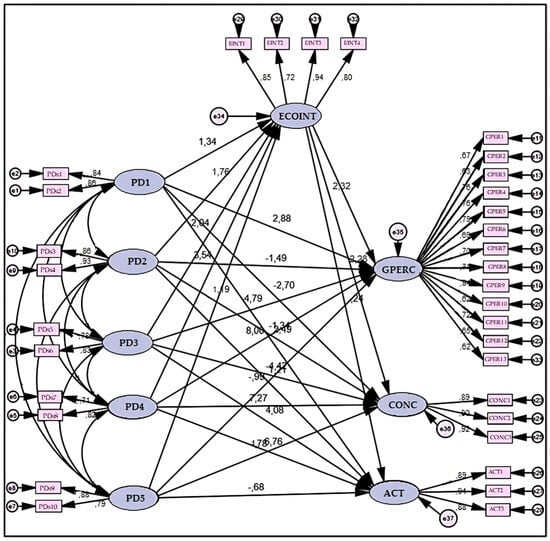 Lastly, Openness to Experience, which is characterized by curiosity and a desire for novel experiences, is consistently associated with environmentally friendly behaviors and the intention to participate in ecotourism [55,57]. Individuals with high levels of Openness are more likely to seek out nature-based experiences and to have a stronger intention to engage in ecotourism. Likewise, Talwar et al. [66] found that Openness to Experience emerged as the most influential factor on travel intentions in the post-pandemic period. From this point of view, it has been proposed that Openness to Experience is positively associated with both ecotourism intention and variables related to climate change.