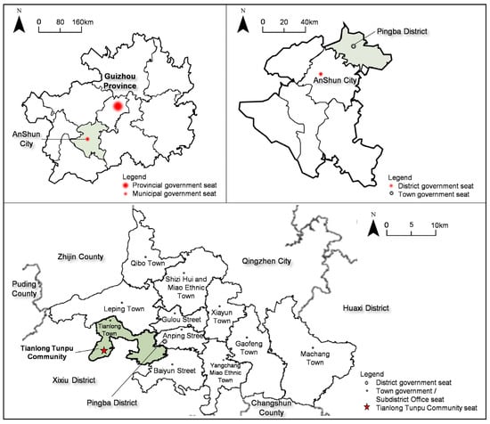 This study selects Tianlong Tunpu as a case study for three main reasons: first, despite its relatively weak economic foundation, Tianlong Tunpu was one of the first rural communities in Guizhou Province, and even in China, to develop rural tourism with support from rural elites and local governments. It became an early pioneer in exploring the transfer of community management rights and stands as a successful example of using rural tourism to drive rural revitalization and achieve sustainable development. Its governance and development practices offer valuable lessons for other remote rural communities in China. Second, the governance network of Tianlong Tunpu has undergone a complete cycle of construction, operation, disintegration, and reconstruction. Throughout this transformative process, administrative, social, and market forces have all participated, continuously adapting their roles to align with developmental realities and advancing the transformation of the governance network. Currently, as China’s rural areas undergo a transitional phase of development, characterized by complexity and rapid change, there is a pressing need to optimize and reconfigure governance networks [,]. Therefore, analyzing the mechanisms and dynamics of this transformation provides valuable insights and practical references for guiding governance network transitions in other rural communities. Third, during its development, Tunpu culture has served as the core resource for rural tourism development and as a crucial medium for promoting multi-actor collaboration, consistently functioning as an important non-human actor within the governance network. This unique characteristic helps shed light on the significant role of non-human actors in rural governance.
