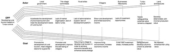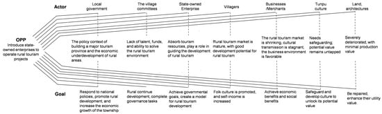 After identifying the challenges and objectives of all actors, the local government took on a leadership role, facilitating collaboration. It introduced SOE with dual policy-driven and market-oriented capabilities to manage rural tourism projects. These projects were positioned as the network’s OPP (Figure 6), aligning the diverse interests and goals of all participants to create a cohesive strategy.
