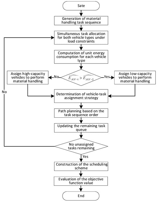 Flowchart of the scheduling process for heterogeneous M-AGVs.