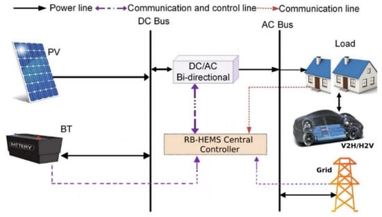 - A novel rule-based home energy management system that combines PV-BES-EV to enable the user to efficiently utilize the system. In the proposed HEMS, EV is addressed as a secondary load during charging and as an energy storage system that can supply power to the household load (V2H).