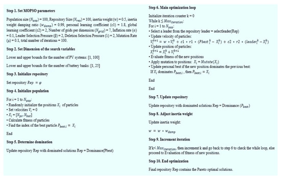 - Samy, M.; Barakat, S. Application of MOPSO to the Optimisation of an Off-Grid Photovoltaic System in a Rural Fruit Farm. J. Eng. Sci. Sustain. Ind. Technol. 2023, 1, 7–13. [Google Scholar] [CrossRef]