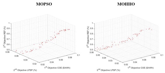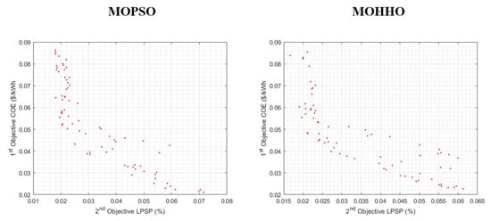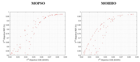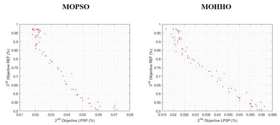 - Applying a fuzzy logic approach to find a compromised solution out of the Pareto fronts resulted from MOPSO and MOHHO.