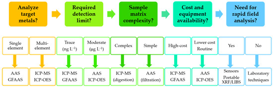Table 2 serves as a helpful guide for selecting the appropriate method based on metal targets, sensitivity requirements, and available equipment.