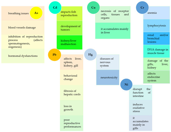 - Singh, S.; Jain, A.; Yadav, S.; Dubey, A.; Trivedi, S. A review on heavy metal-induced toxicity in fishes: Bioaccumulation, antioxidant defense system, histopathological manifestations, and transcriptional profiling of genes. J. Trace Elem. Med. Biol. 2024, 83, 127377. [Google Scholar] [CrossRef]