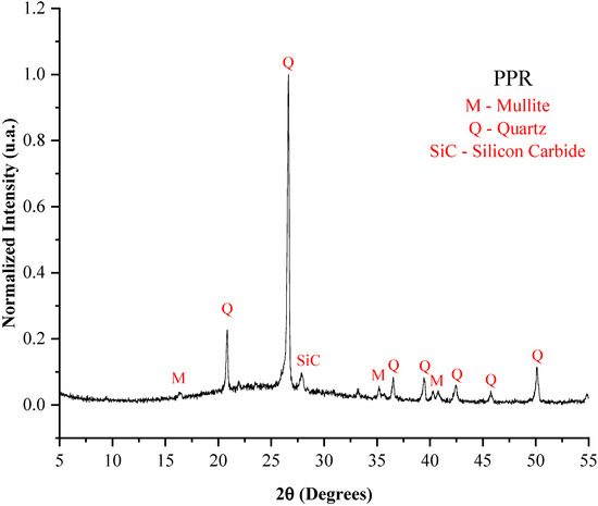 The presence of silicon carbide (SiC) in the PPR is explained by the abrasive material used during the polishing stage of porcelain tiles, which can contribute to expandability when subjected to high temperatures, due to the porosity generated from gas release [40].