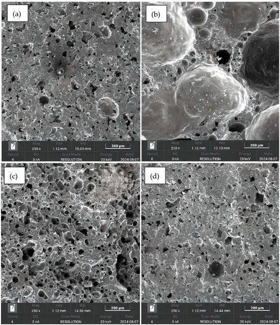 Regarding sintering time, it was observed that shorter durations resulted in higher densities, likely because insufficient time limits the release of gases that contribute to the material’s lightness. Conversely, slower heating rates led to lighter materials, whereas higher rates caused disordered pore formation, which is prone to collapse and results in increased density.