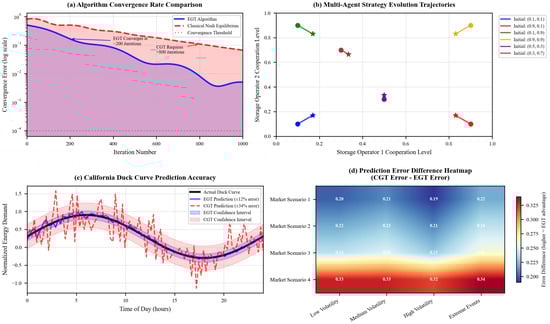 The evolution from classical to EGT represents a paradigm shift from static equilibrium analysis to dynamic adaptation modeling. Weibull’s (1995) EGT provides the mathematical framework for strategy evolution through replicator dynamics (RD) [22], while Sandholm’s (2010) population games theory offers sophisticated tools for analyzing large-scale multi-agent interactions [14]. In energy storage contexts, this theoretical evolution enables modeling of bounded rationality, learning dynamics, and adaptive behavior that better reflect real-world energy market conditions.