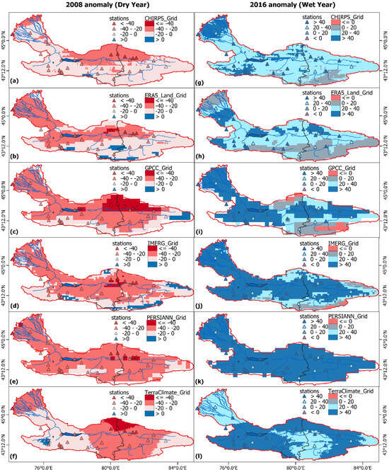 All datasets successfully identified 2008 as a drought year and 2016 as a wet year, confirming their general capability to detect interannual variability. However, differences in the magnitude and spatial detail of anomalies were evident. PERSIANN often overestimated wet or dry conditions, limiting its reliability for extreme event analysis.