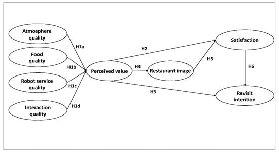 Thus, this paper aims to investigate causal associations among service quality at robotic restaurants and perceived value, restaurant image, satisfaction, and revisit intentions among customers. In detail, it examines (1) the influences of four dimensions of service quality (atmosphere quality, food quality, service quality, and interaction quality) at robotic restaurants on customers’ perceived value, (2) the influence of perceived value on robotic restaurant image, satisfaction, and robotic restaurant revisit intentions in customers, and (3) the impact of robotic restaurant image on satisfaction and the impact of customer satisfaction on their revisit intentions.