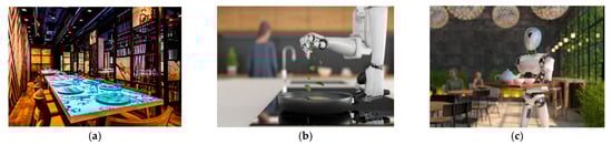 Scenarios: (a) high-tech atmosphere; (b) chef robot; (c) a serving robot (Image source: Pixabay, licensed use).